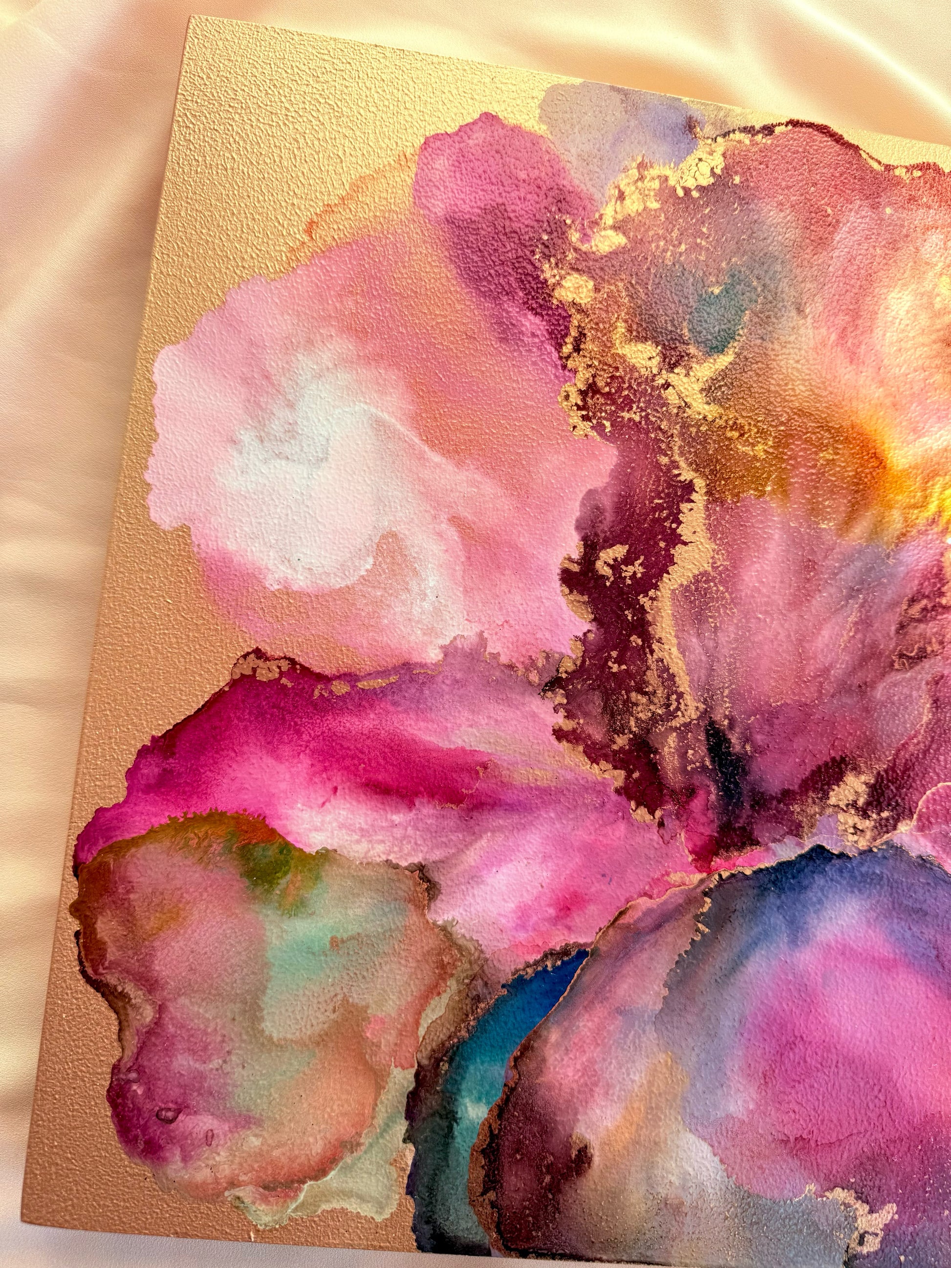 Alcohol ink and mixed media original artwork on cradled wooden art panel. From 'The Season of Light' Collection.