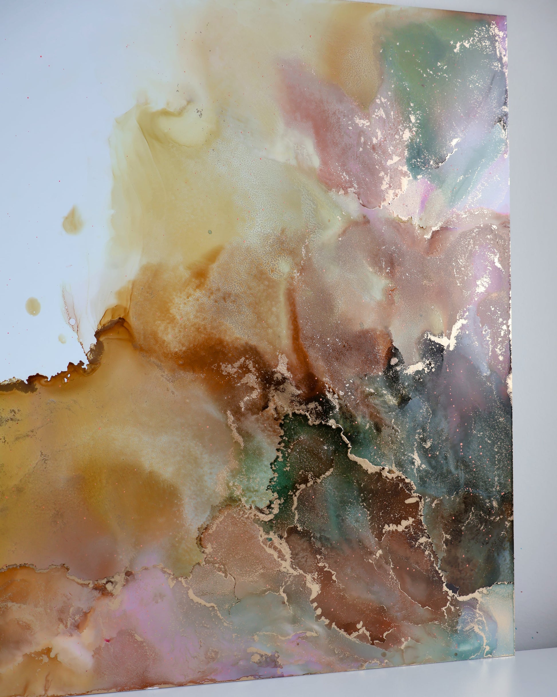 50 x 70cm alcohol ink and mixed media original artwork on premium lightweight aluminium art panel. From the 'It's Peaceful When It's Quiet' Collection.