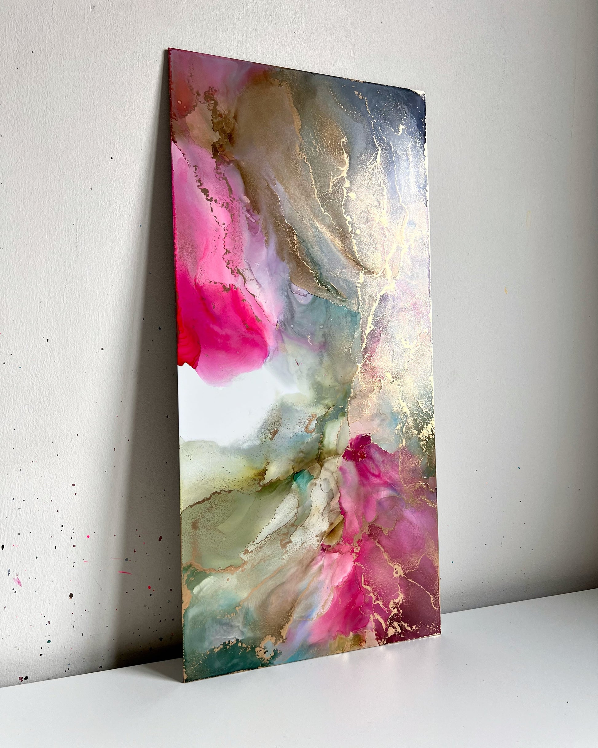 28 x 60cm alcohol ink original artwork on premium lightweight aluminium art panel.