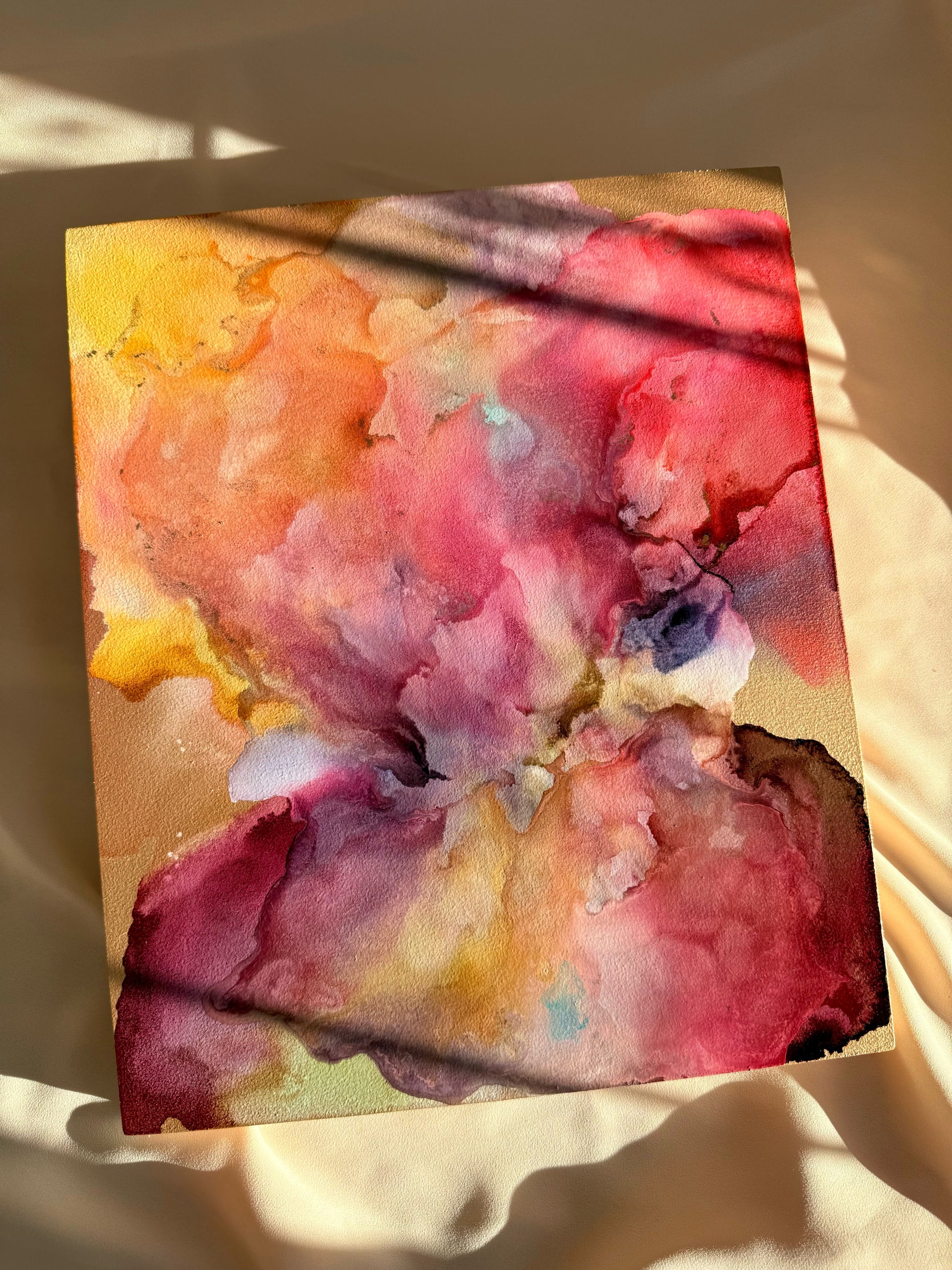 Alcohol ink and mixed media original artwork on cradled wooden art panel. From 'The Season of Light' Collection.