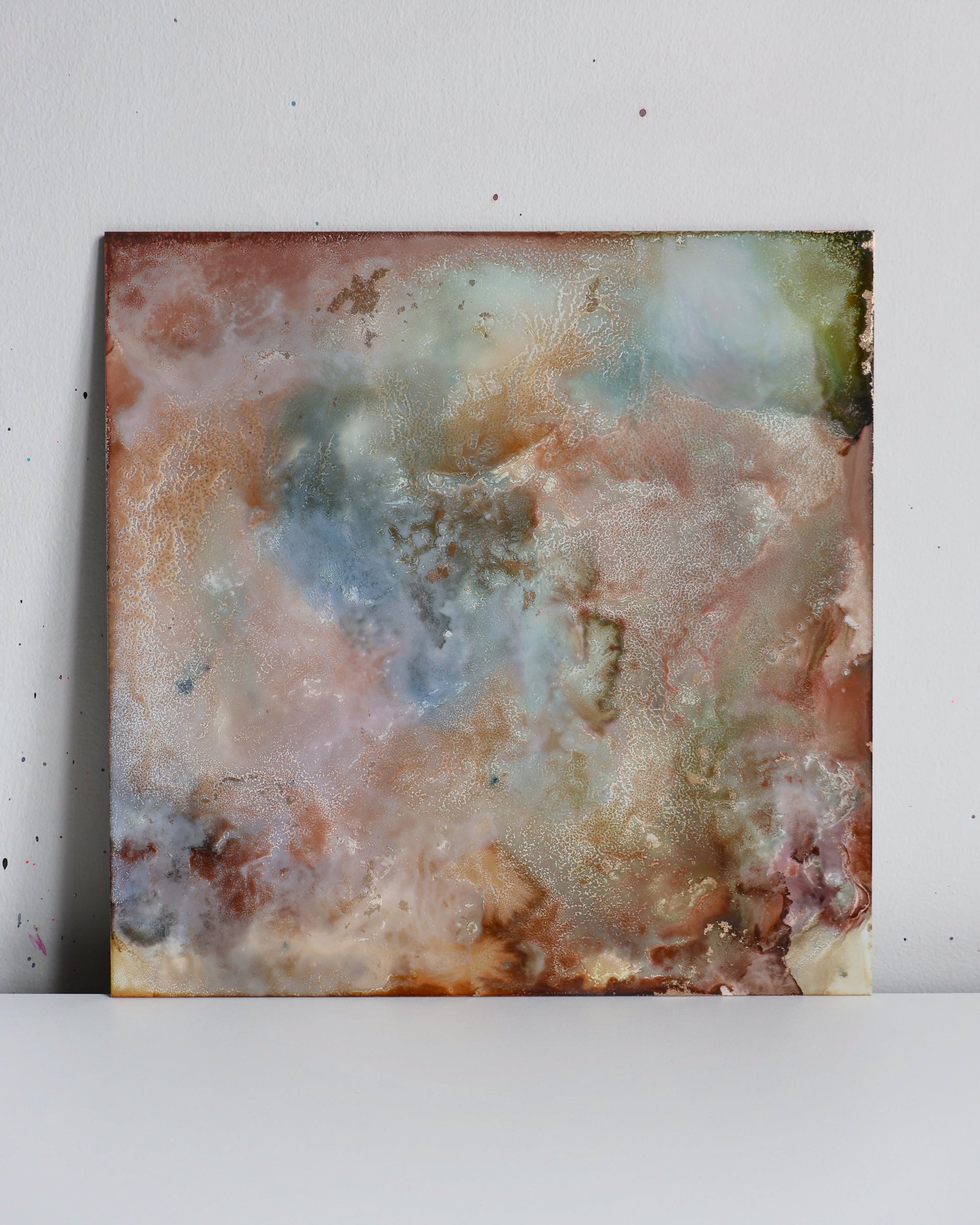 30 x 30cm alcohol ink and mixed media original artwork on premium lightweight aluminium art panel. From the 'It's Peaceful When It's Quiet' Collection.